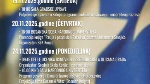 U sklopu aktivnosti kojima Grad Konjic obilježava Dan državnosti Bosne i Hercegovine danas je u sali Gradske uprave Konjic gradonačelnik Konjica Osman Ćatić potpisao ugovore sa 14 korisnika programa podrške osnivanja i unapređenja biznisa za ruralna područja i programa podrške u osnivanju i unapređenju biznisa za 2025.godinu namjenjenih mladima. Riječ je o programima kojima je putem javnih poziva pružena podrška u iznosu do 30 hiljada KM.