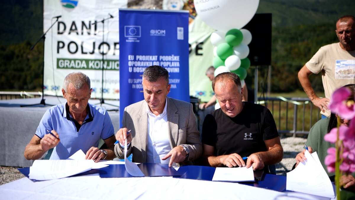 Na sajamskoj manifestaciji „Dani poljoprivrede grada Konjica“, koja je u organizaciji Saveza poljoprivrednih udruženja Konjic i Mjesne zajednice Neretvica uz podršku Grada Konjica, održana u srijedu 17. 09. 2025. godine u Buturović Polju, potpisani su ugovori sa 54 poljoprivredna proizvođača u okviru EU projekta podrške oporavku od poplava u BiH koji finansira Evropska unija. Korisnici projekta odabrani su putem javnog poziva, kako bi se osigurala transparentnost, pravilna procjena stvarnih potreba, te usmjerila pomoć onima kojima je najpotrebnija.