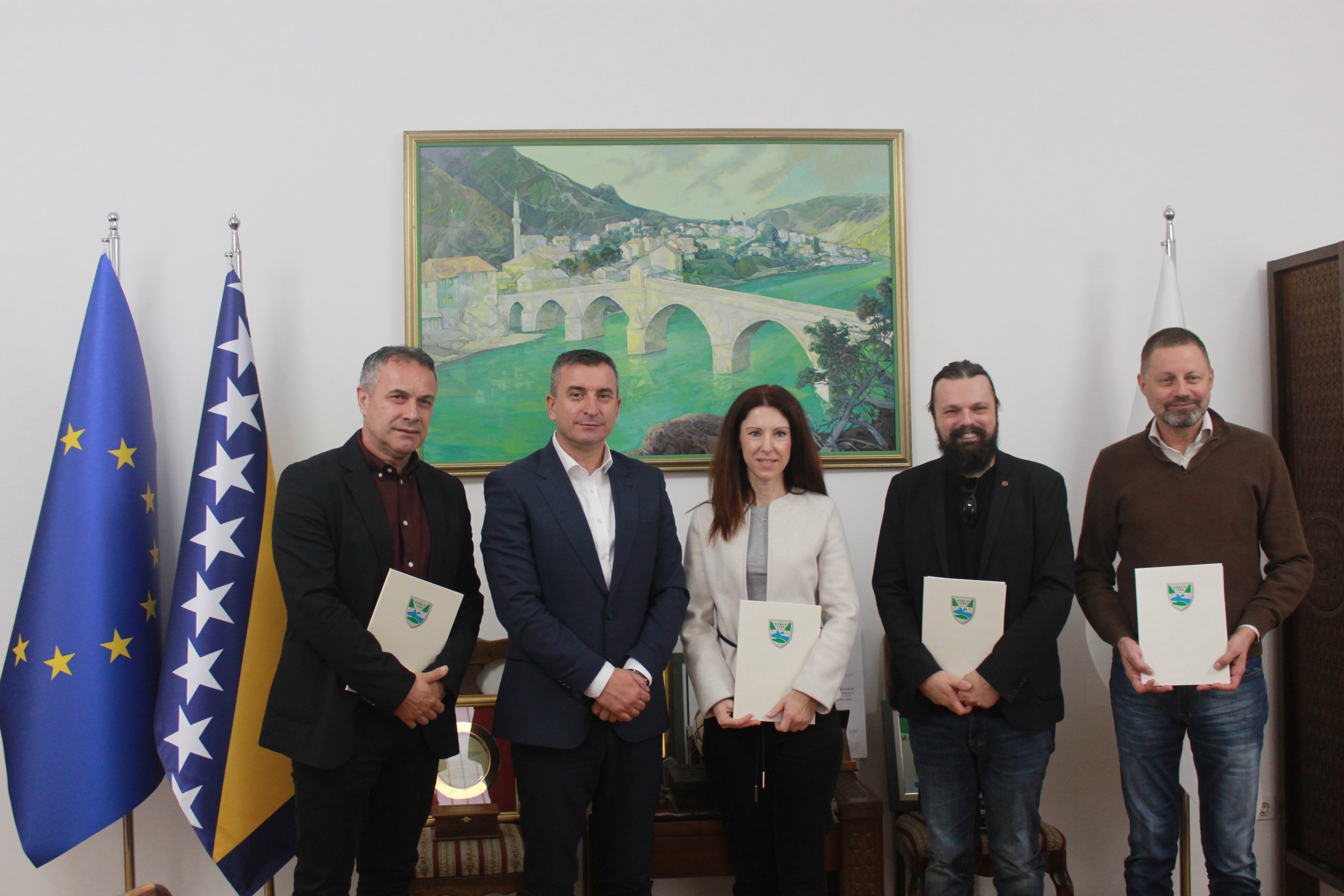 - Grad Konjic nastoji u kontinuitetu da pomaže mladim ljudima, da se ostvare u skladu sa svojim stečnim znanjem, kako u srednjoj školi, tako i visokoškolskim ustanovama. Drago nam je da imamo mlade ljude, koji su se u neformalnim aktivnostima već pokazali i da će danas preći u profesionalni angažman svojih sposobnosti koje su stekli. Ponosni smo što su tu i mladi ljudi, koje smo pratili kroz njihovo obrazovanje, to su studenti sa prosjekom 9 i više, 4 i više, gdje smo poklanjali pažnju tim mladim ljudima, da ih nagradima za njihovo obrazovanje. Danas kada su tu sa svojim poslovnim idejama odlučni da pokrenu samostalni biznis, da rade za sebe i ono što je najvažnije da ostanu u svom Konjicu, u svojoj domovini Bosni i Hercegovini, posebno smo ponosni. Dan državnosti Bosne i Hercegovine najljepši je povod za potpisivanje ugovara sa mladim ljudima, jer se trudimo da u sklopu obilježavanja Dana državnosti BiH, Dana nezavisnosti BiH i Dana grada Konjica ovakvim programima skrenemo pažnju na mlade ljude, na njihov angažman, njihovo obrazovanje i na njihovu budućnost, kako bi ostali u svojoj domovini Bosni i Hercegovini - kazao je gradonačelnik Ćatić, čestitajući Dan državnosti svim Bosancima i Hercegovcima.