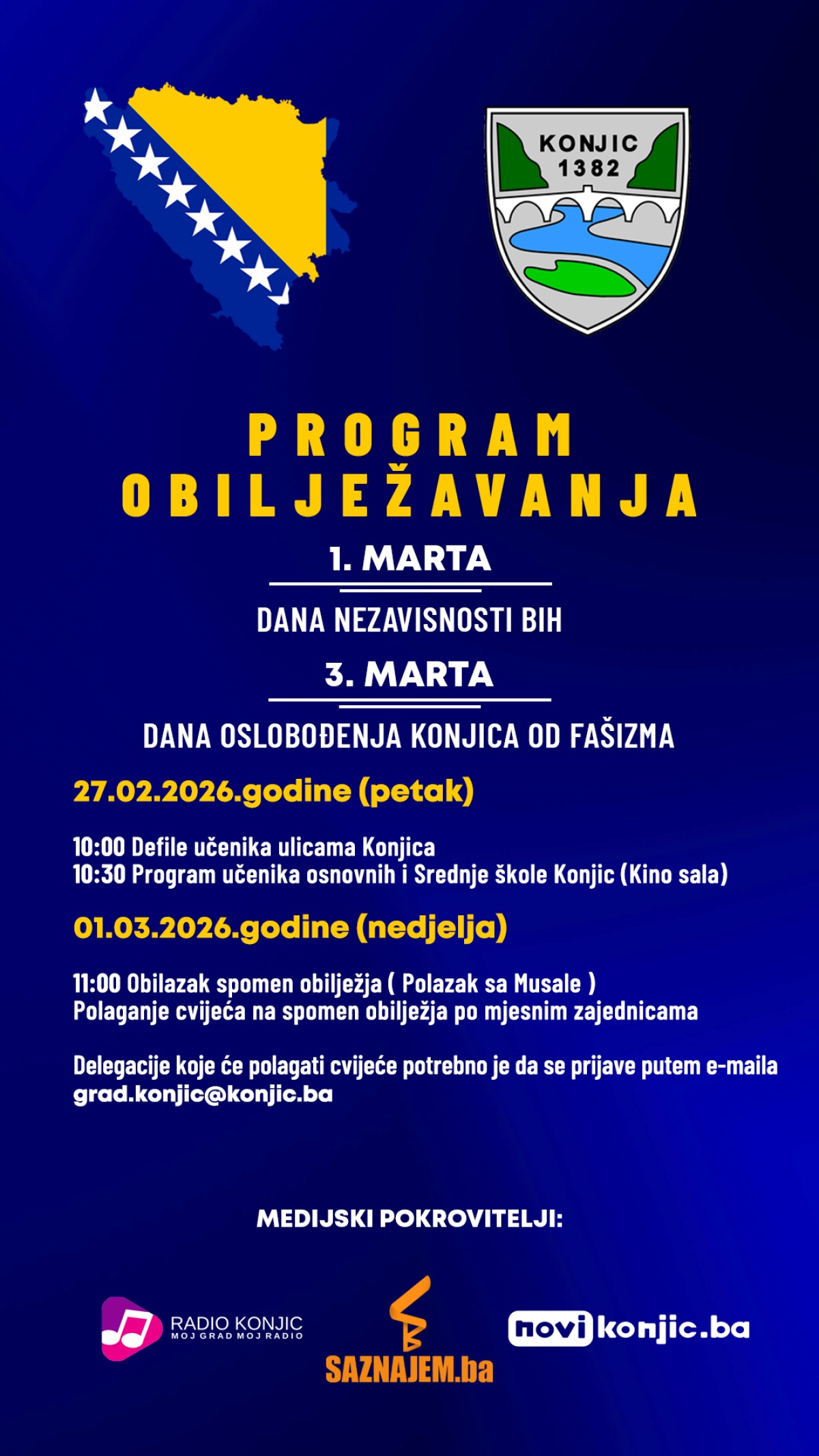 Program obilježavanja Dana nezavisnosti Bosne i Hercegovine i Dana oslobođenja Konjiica od fašizma